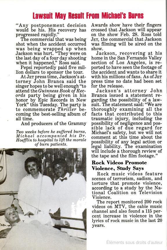 Archives: Thriller Era Michael Jackson Rests At Home; Healing Of Burns Pleases Medics – Jet, 13 février 1984 13 février 2014 / No Comments Note: pour obtenir les photos en taille réelle, un petit clic droit « ouvrir l’image dans un nouvel onglet »